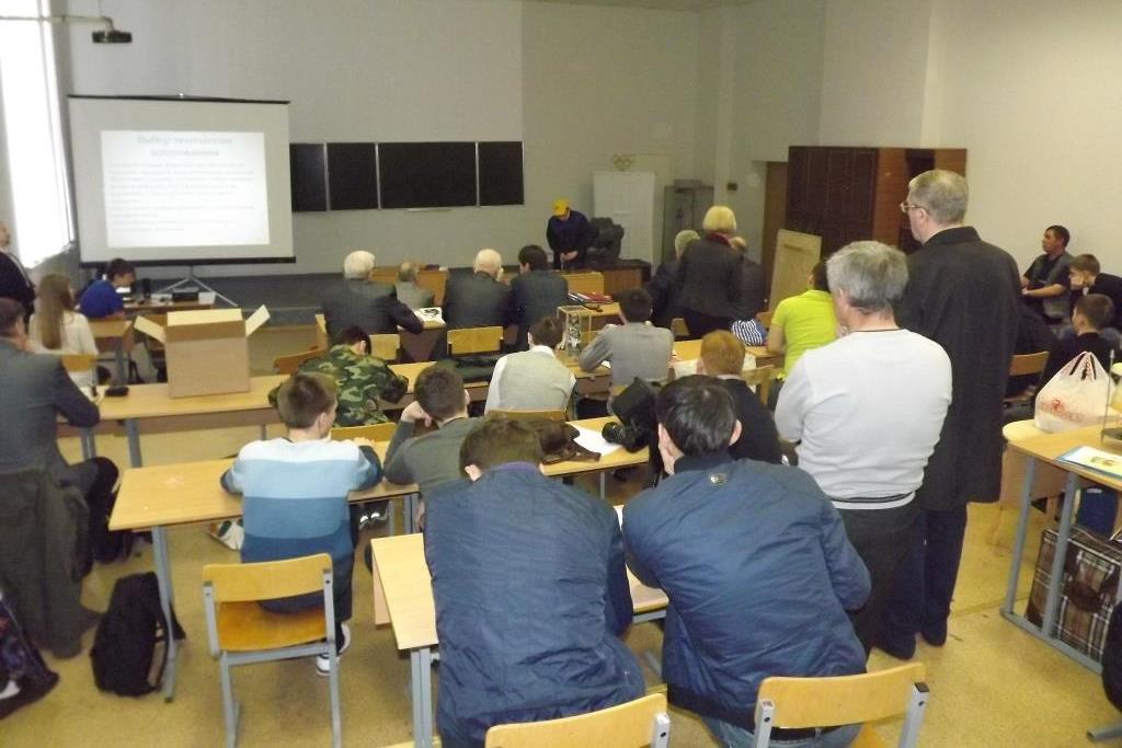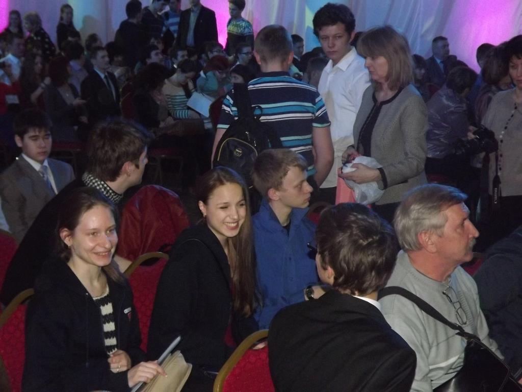 Далее в течение трех дней проходило последнее состязание - защита проектов. Школьники команды Москвы выступали два дня. Девушки защищали свои проекты в спортзале со сценой-подиумом, а юноши - в просторной аудитории.