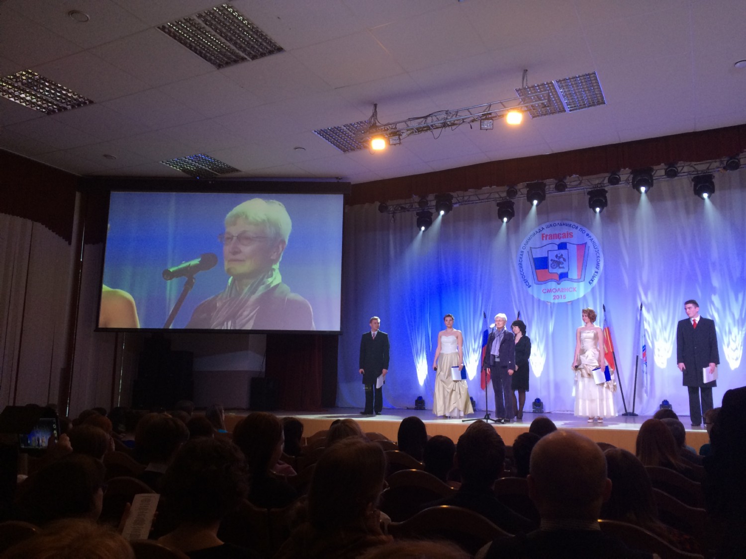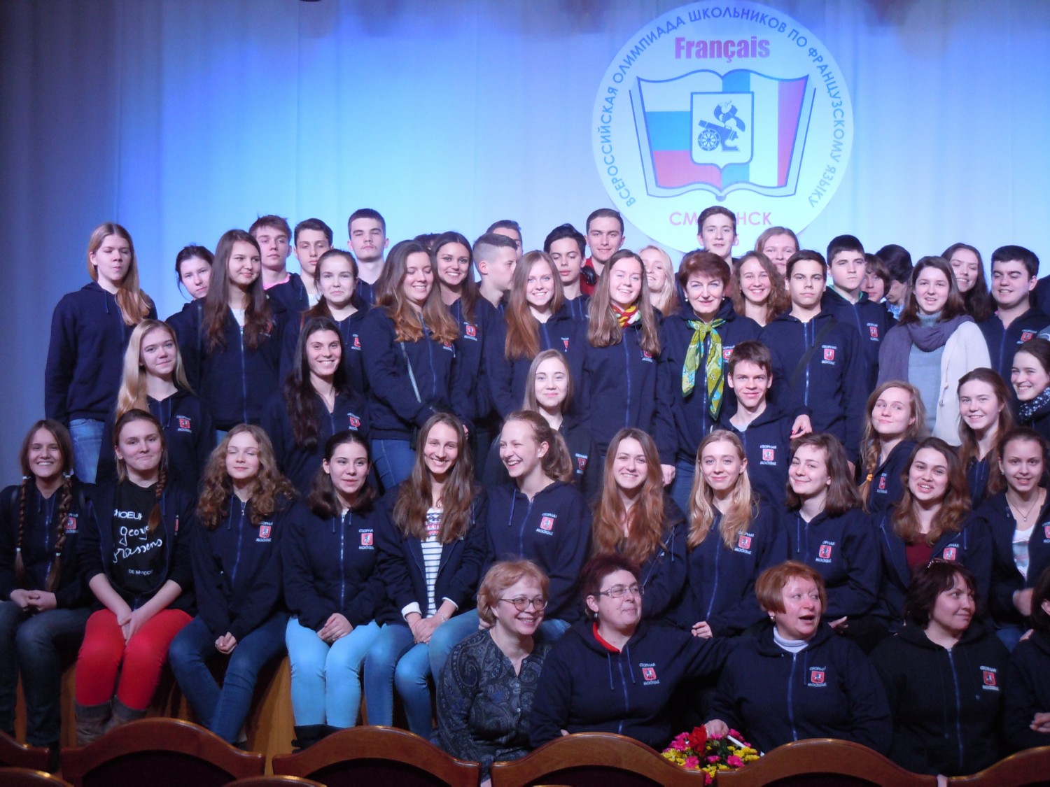 После обеда участники отправились на торжественное открытие олимпиады. Вечер для московской команды завершился фотосессией на сцене СмолГУ.