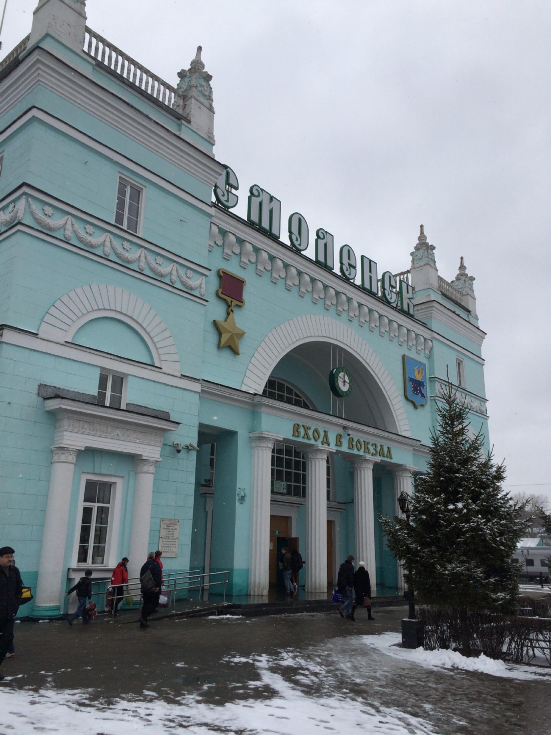 Всего четыре часа в комфортабельных креслах и команда прибыла на место. Смоленск встретил москвичей снегом и ветром. Шапочки надо надеть!